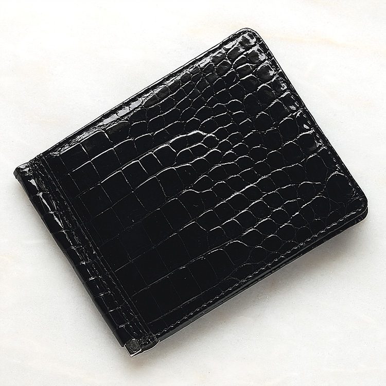 クロコダイル ワニ革 二つ折り財布 ブラック