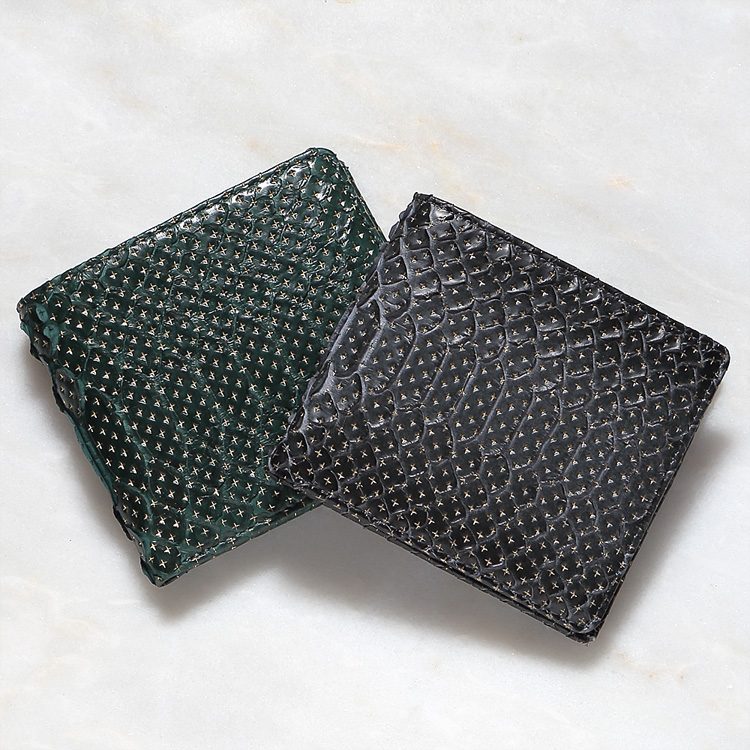 ダイヤモンドパイソン 蛇革 二つ折り財布 選べる2色